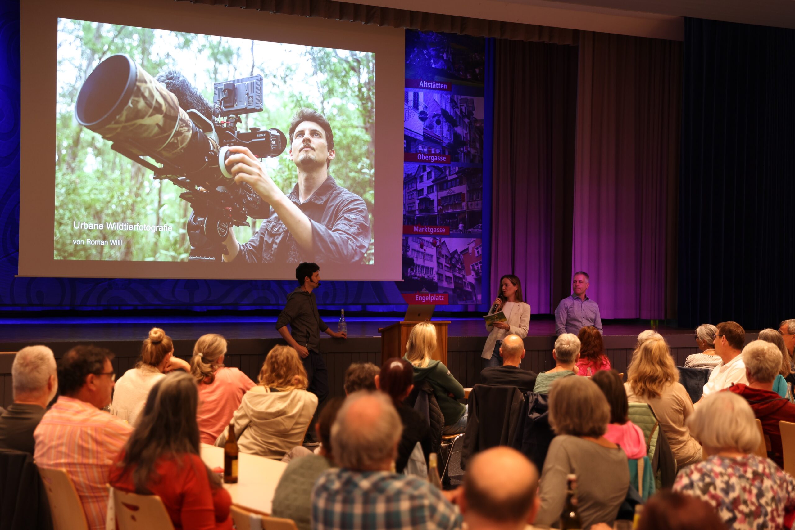 Die Stühle reichten kaum aus: Mehr als 240 Naturfreunde liessen sich in Altstätten und Buchs von Roman Willis faszinierenden Bildern begeistern. Der Tierfotograf und -filmer nahm sein Publikum mit auf eine visuelle Naturentdeckungsreise – für das, was oft unbemerkt bleibt, aber dennoch faszinierend und wertvoll ist.